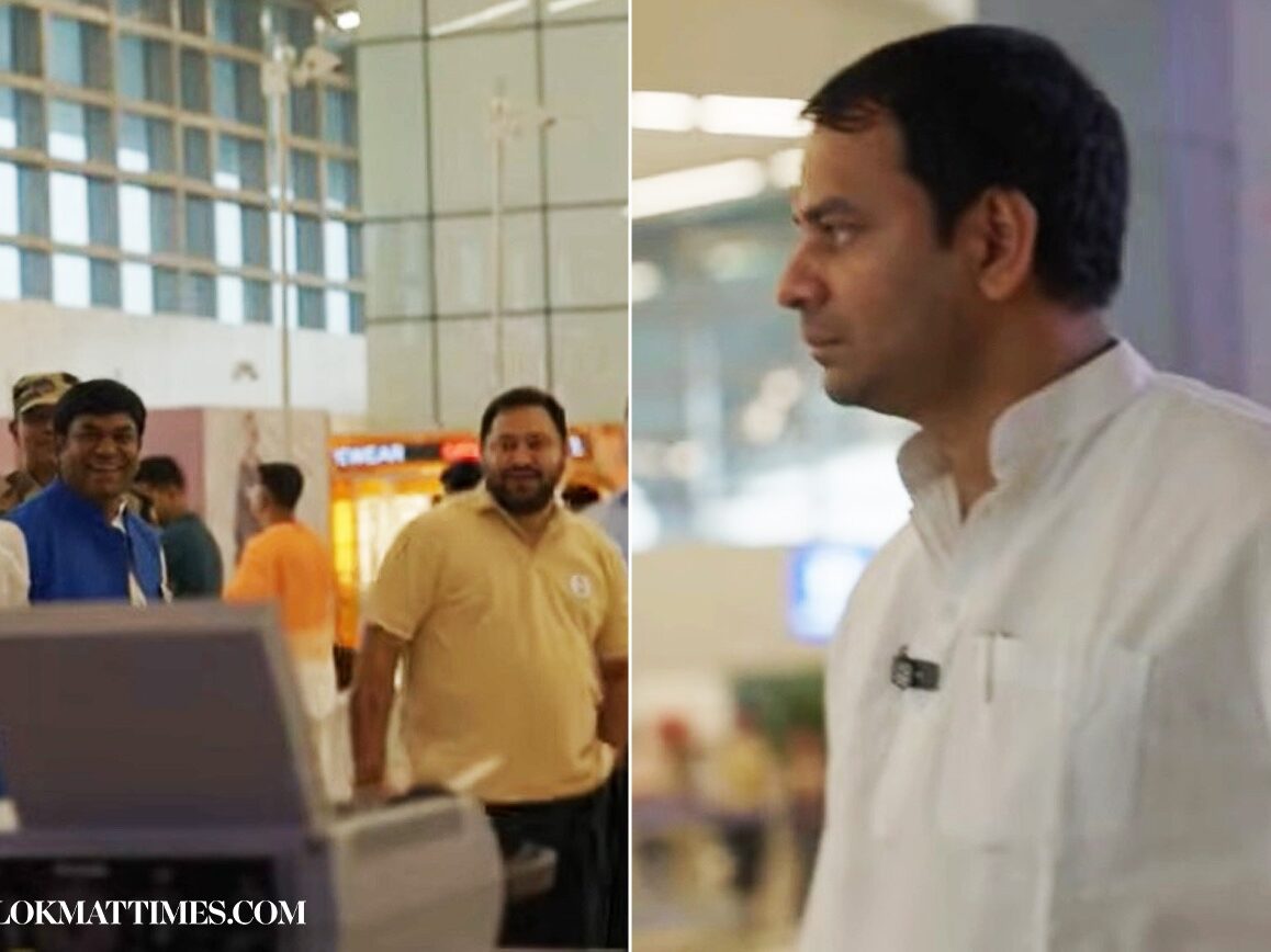 नई दिल्ली: कल बिहार विधानसभा चुनाव के पहले चरण की तैयारियों के बीच, पटना एयरपोर्ट का एक वीडियो सोशल मीडिया पर वायरल हो गया है। क्लिप में अलग-अलग रह रहे भाई तेजस्वी यादव और तेज प्रताप यादव की अचानक मुलाकात दिखाई दे रही है।